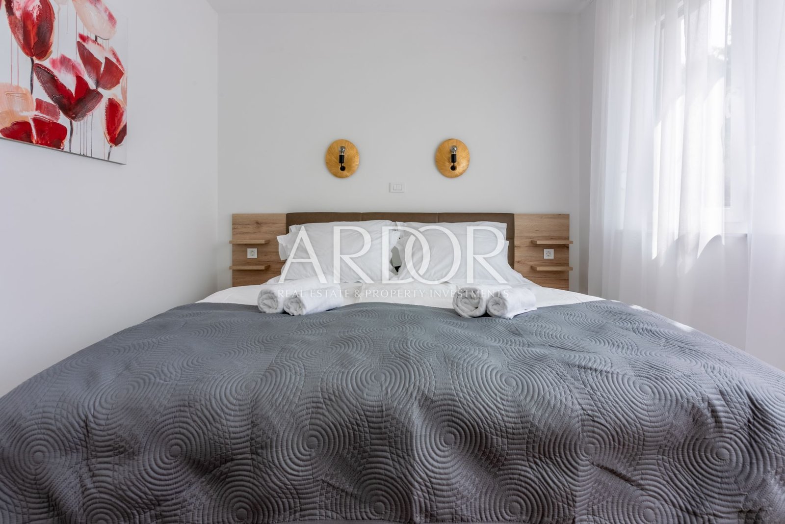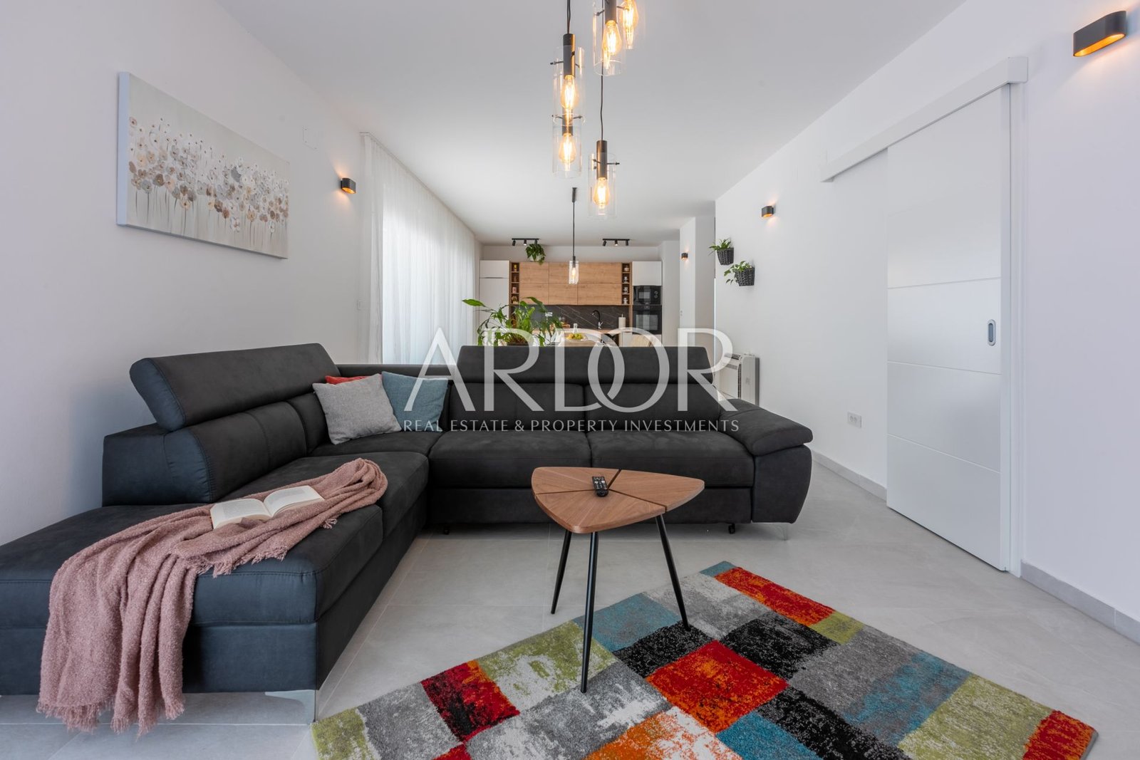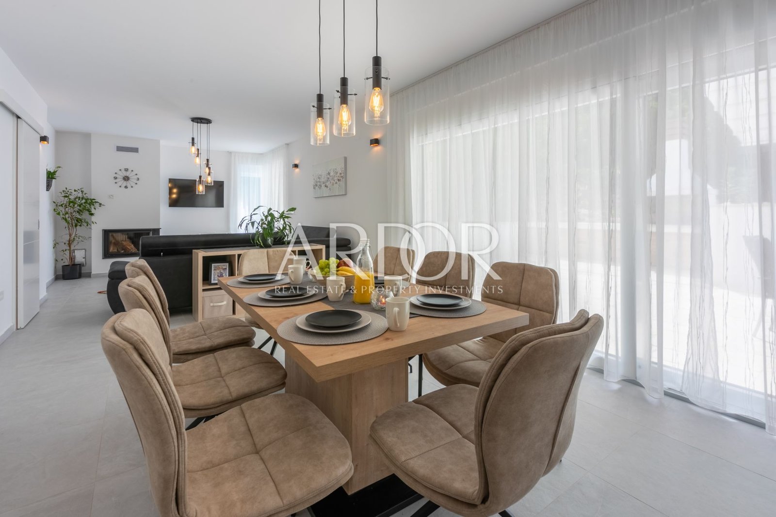 Iz dnevnog boravka izlazi se na lijepo uređenu terasu s dijelom za roštiljanje, te bazen opremljen opremom s mogućnošću dogrijavanja vode, savršen za opuštanje tijekom cijele godine. Nekretnina se prodaje kompletno namještena, a u vlasništvu su i dva parkirna mjesta.