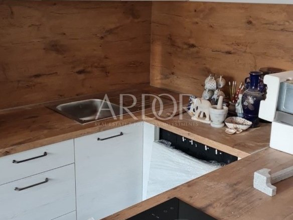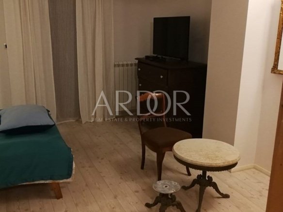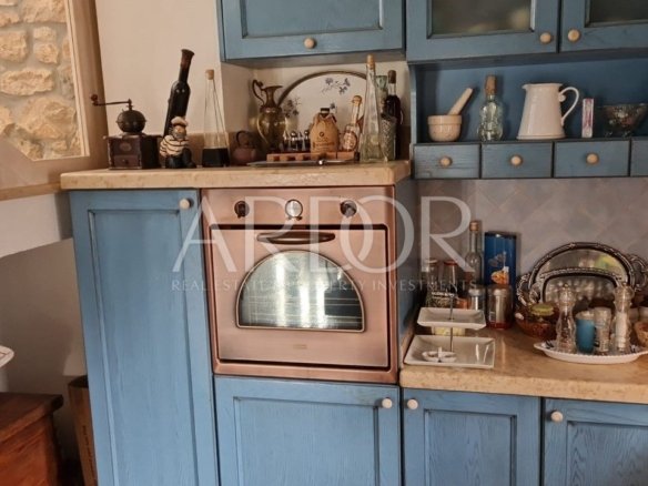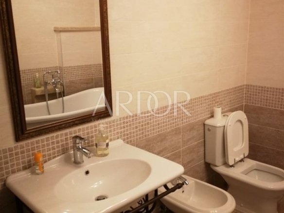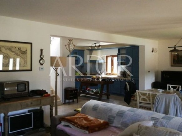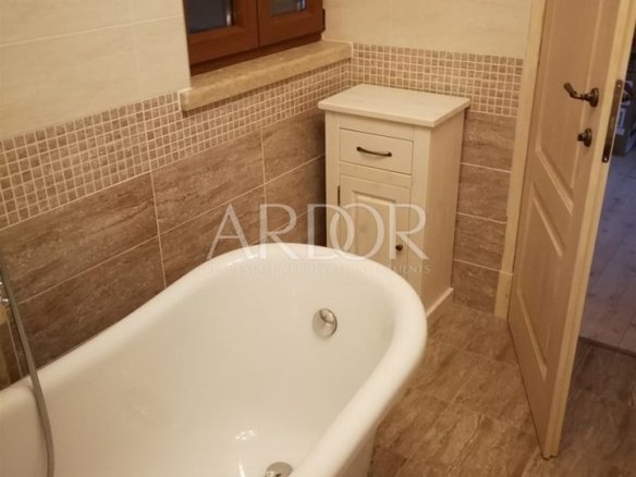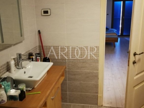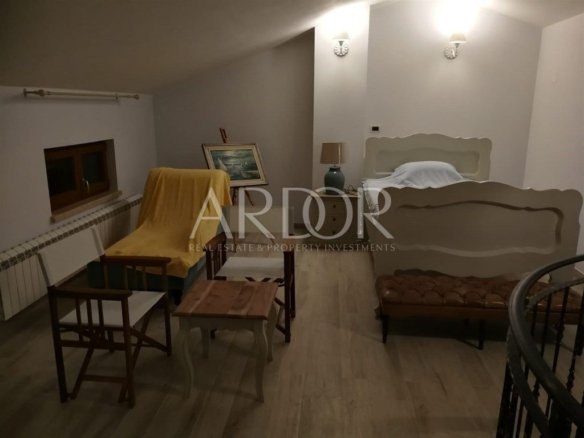 There is also a high ground floor of 75 m2. which consists of one bedroom, walk-in closet, bathroom with massage tub and terrace with a view of Učka. All rooms are air-conditioned.