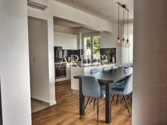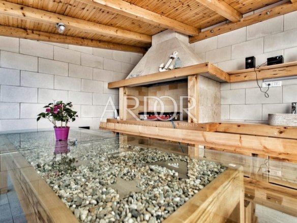 Vila se prostire na tri etaže, s ukupno 300 m² stambenog prostora, smještena na prostranoj okućnici od 700 m². U sklopu okućnice nalazi se grijani bazen od 30 m² s protustrujnim plivanjem i masažom, uređeni vrt, roštilj te sjenica – savršeno mjesto za opuštanje i druženje na otvorenom.