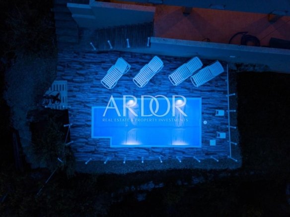 Hiša se nahaja blizu centra Opatije (le 2 km od Slatine) in je idealna za turizem, luksuzno bivanje ali kot zasebna rezidenca. Razprostira se čez tri etaže in vključuje pet spalnic, sedem kopalnic, štiri prostorne dnevne sobe in štiri popolnoma opremljene kuhinje. Z dvema velikima terasama po 120 m² s pogledom na morje hiša ponuja tudi park z bazenom, garažo za dva avtomobila, osem parkirnih mest, vinograd, sadovnjak, savne in številne druge ugodnosti.