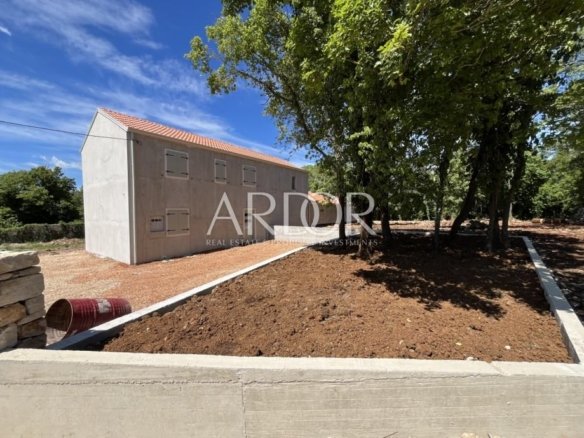 Kuća je sagrađena, postavljena je fasada, ožbukana iznutra, postavljene su sve instalacije, struje, vode, grijanja i video nadzor.