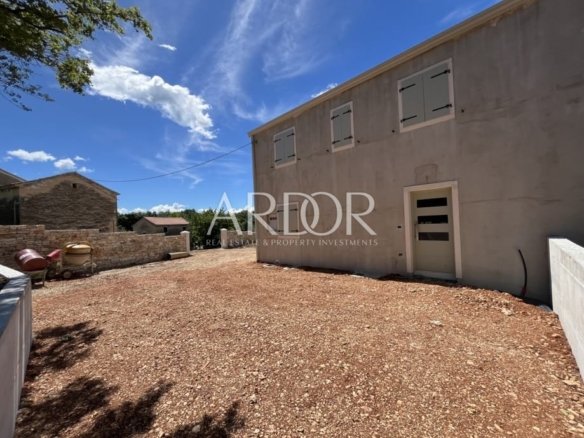 Hiša je zgrajena, fasada je nameščena, notranjost je ometana, nameščene so vse inštalacije, elektrika, voda, ogrevanje in video nadzor.