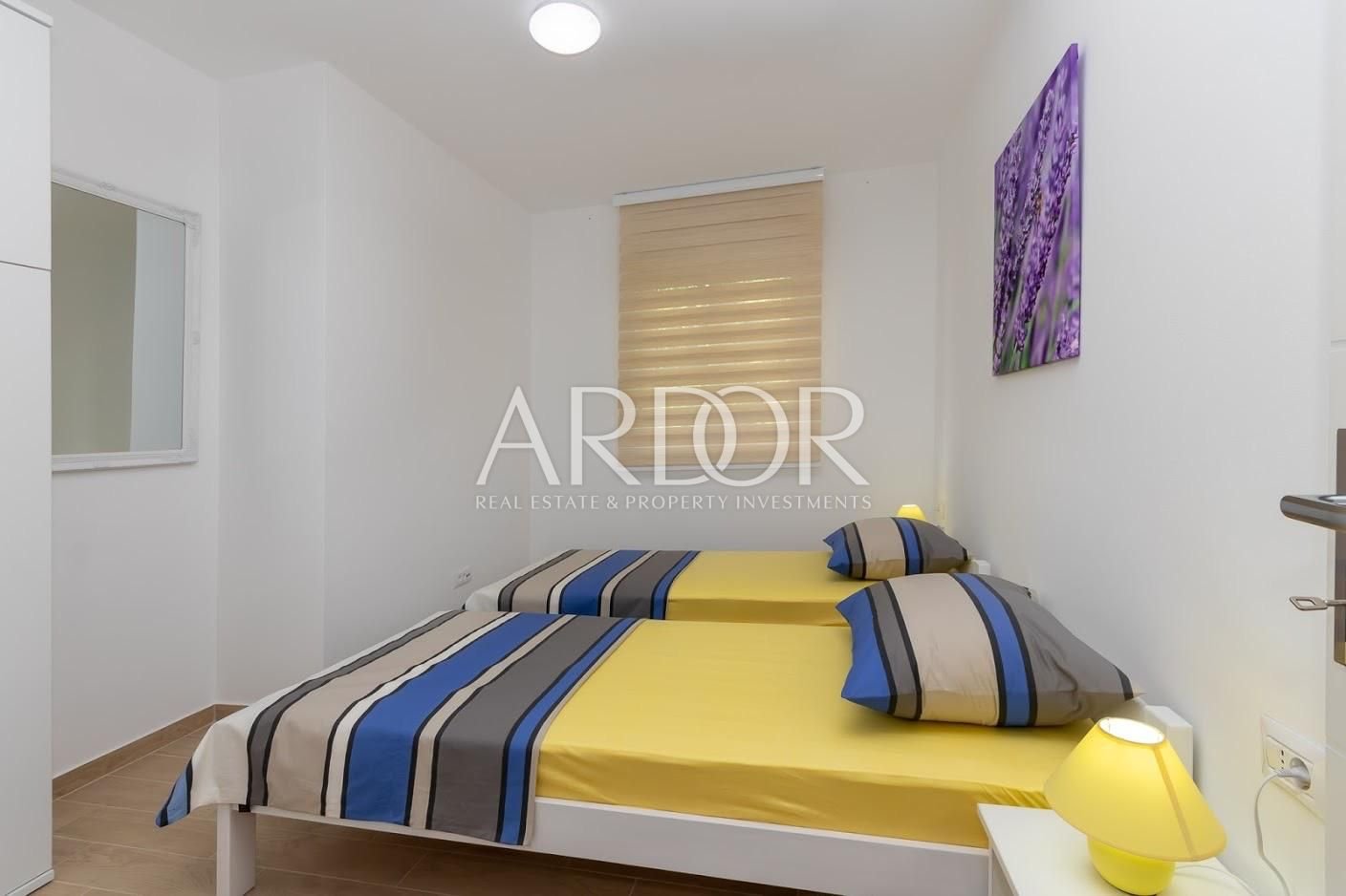 Stan raspolaže s dvije spavaće sobe. Glavna spavaća soba ima walk-in ormar i vlastiti balkon, dok je druga soba opremljena s dva ležaja te se može koristiti kao dječja, gostinjska ili radna soba.