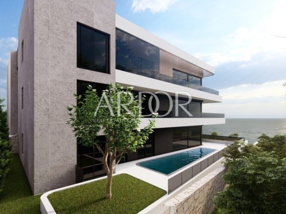 The special feature of this property is the impressive roof terrace of 67 m2 with an outdoor private pool of 28 m2 from which a panoramic view of the Kvarner Bay is offered.