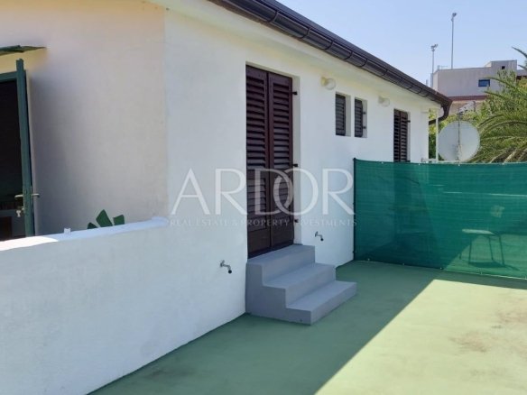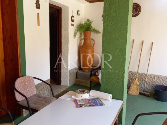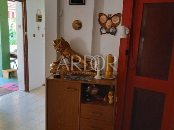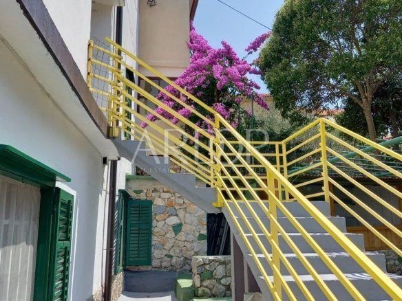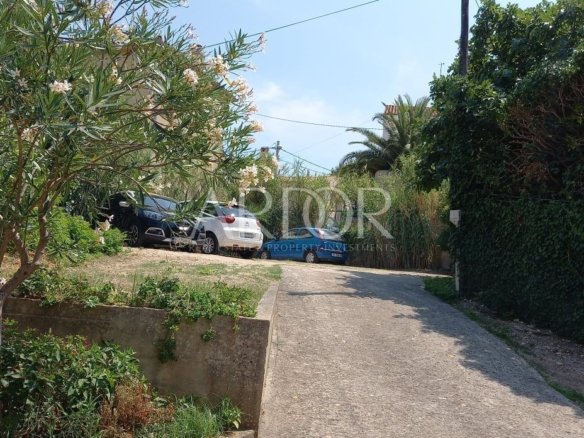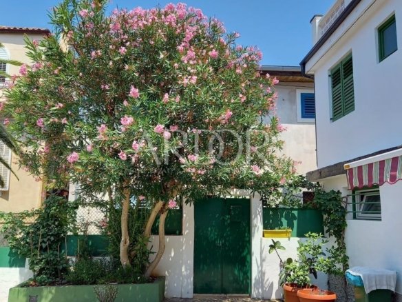 Pristup ovoj nekretnini je moguć i sa pješačke zone, po malim uskim, primorskim kaletama, a visoki zid vas štiti od pogleda slučajnih prolaznika. Sve je okruženo zelenilom, a po ljeti se preko zidova nameću bugemvilije. Sa pješačke je zone predivan, starinski portun, koji bi mogao pričati puno priča… Ova kuća ima jako veliki potencijal, u turističkom smislu, kao i za osobni gušt u ovom predivnom gradu punom radosti i lijepe povijesti.