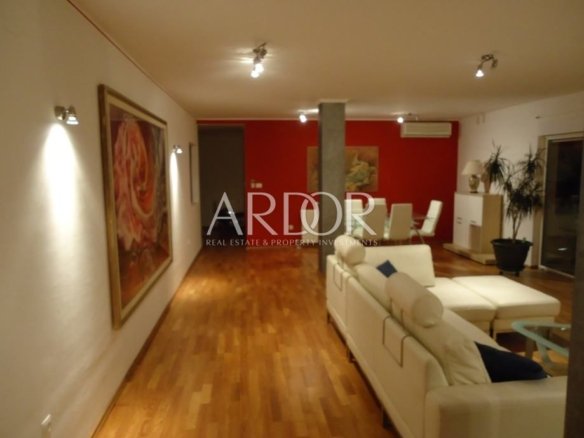 Stan obuhvaća prostranu kuhinju s blagovaonicom, četiri sobe, tri kupaonice s WC-om, hodnik te tri balkona/lođe. Uz stan dolaze i dva parkirna mjesta – jedno natkriveno i jedno nenatkriveno.