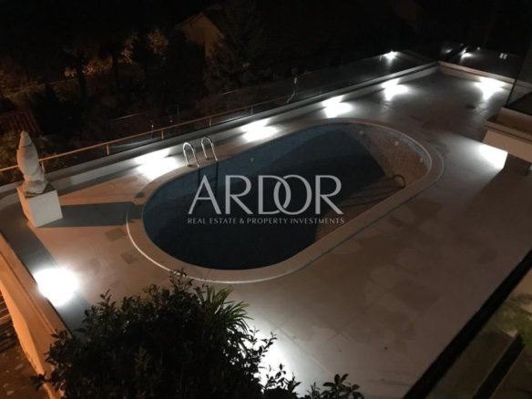Nalazi se na odličnoj poziciji, samo 4 km od centra Opatije i 7 km od Rijeke. Potpuno je namješten i spreman za useljenje, pružajući savršen spoj komfora, luksuza i praktičnosti.