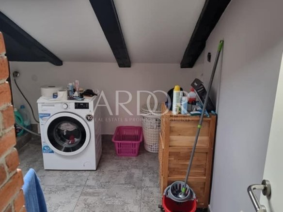 L’edificio ha due ingressi: grazie alla configurazione del terreno, l’appartamento si trova al secondo piano da un lato e al quarto piano dall’altro. La superficie reale è di 100 m², anche se nei documenti ufficiali è registrato come 70 m² a causa della mansarda. L’appartamento comprende un ampio soggiorno con zona pranzo, cucina, una camera da letto, balcone e un posto auto privato. Il riscaldamento è fornito da un condizionatore d’aria, con la possibilità di riscaldamento a legna.