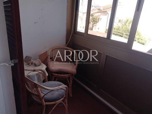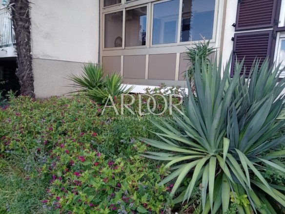 Die Wohnung verfügt über eine verglaste Loggia, Schlafzimmer mit Küche und Wohnbereich (2SZ + Küche/Wohnzimmer) sowie über einen eigenen Garten mit Palme.