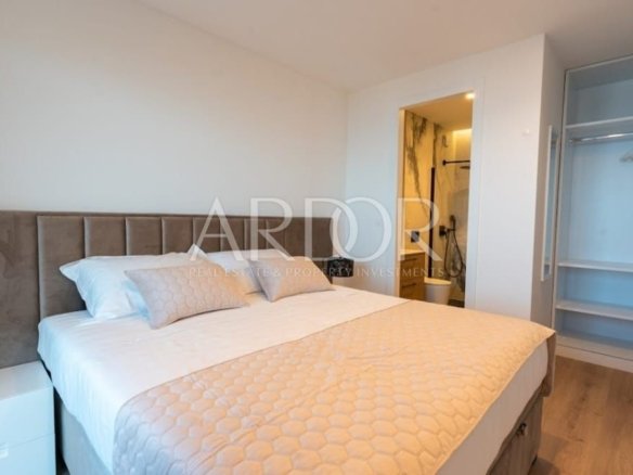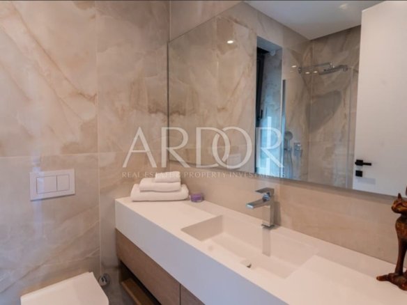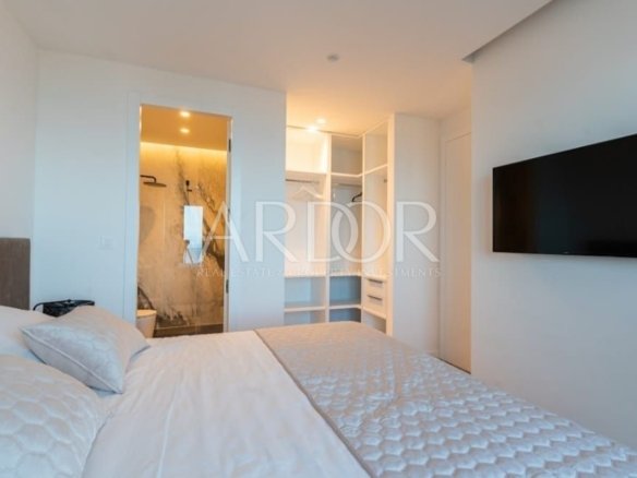 Iznajmljuje se stan sa predivnim pogledom na more, s dvije prostrane spavaće sobe, dva kupatila i dodatnim prostorom od 30m2 koji ima kupatilo s tušem, prema želji za dodatni apartman ili SPA zonu. Stan ima prekrasan open space dnevni boravak, blagovaonu i kuhinju koji se nadovezuju staklenom stijenom na veliku terasu s prekrasnim pogledom.