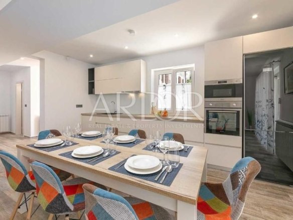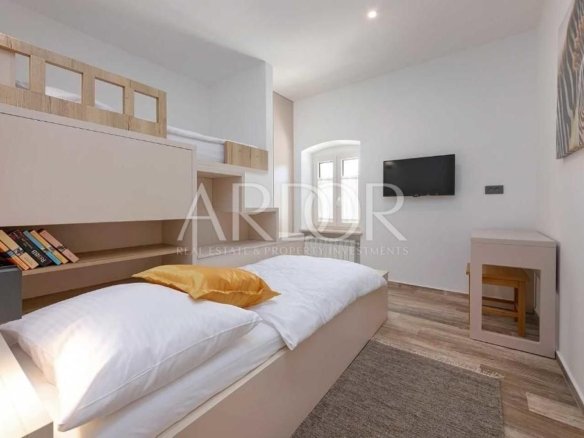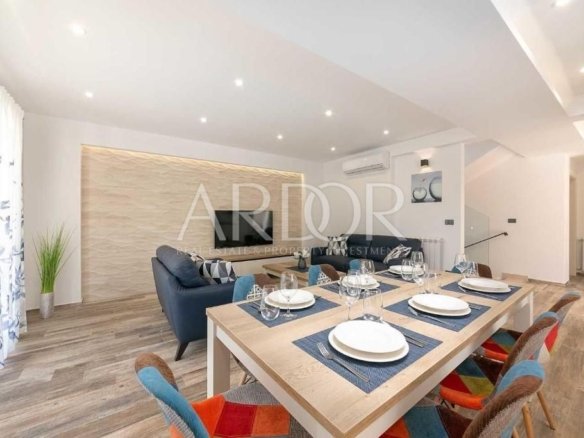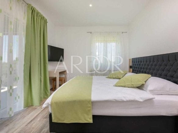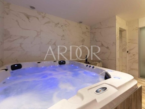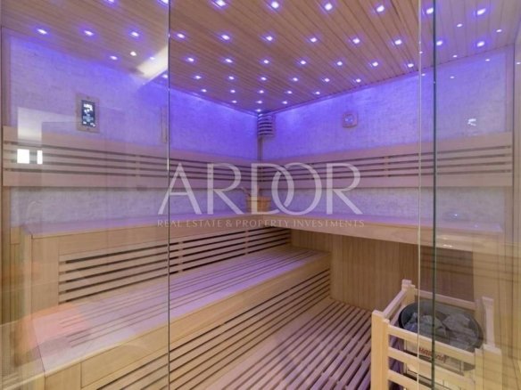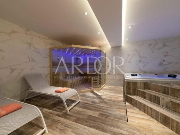 Egy nagyobb épület földszintjén található ez az apartman nappalival, konyhával és étkezővel, valamint fürdőszobával és külön hálószobával. A második emeleten három hálószoba található, mindegyik fürdőszobával. Ezen kívül a pincében van szabadidős rész, masszőr, jacuzzi és WC.