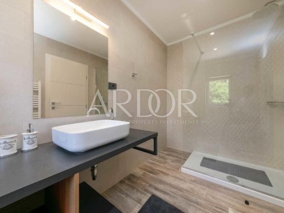 Gondosan gondozott növényzettel teli kert, úszómedence jakuzzival, nyári konyha fedett terasszal és parkoló az udvarban. A fedélzetről nyílt kilátás nyílik a természetre és a növényzetre, és teljesen be van kerítve a magánélet érdekében. Olajfák és más kisebb, hasonló lakó- vagy turisztikai létesítmények állnak rendelkezésre.