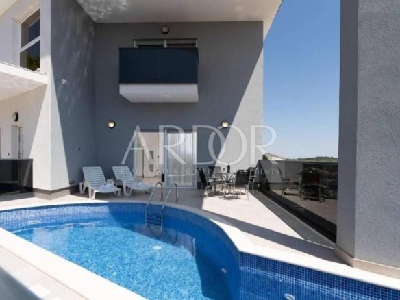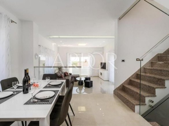 Osim navedenog, u prizemlju se nalazi kuhinja s blagovaonicom, dvije spavaće sobe, te tri kupaonice. Dnevni boravak sa izlazom na prekrasnu terasu sa bazenom.