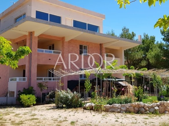 Naprodaj je stanovanjsko-poslovni objekt na prostornem zemljišču, le 200 metrov od plaže. Hiša je sestavljena iz treh etaž: kleti, pritličja in prvega nadstropja ter nedokončane druge etaže.