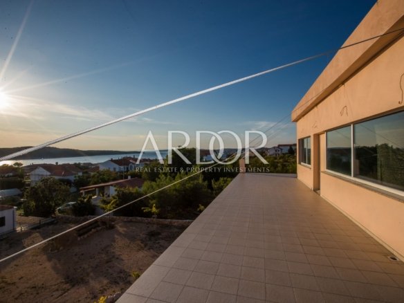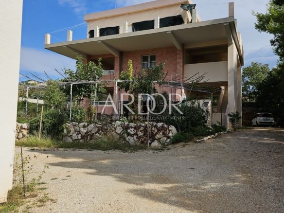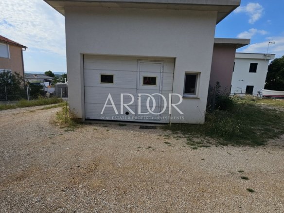 Prodaje se stambeno-poslovni objekt smješten na prostranoj okućnici, svega 200 metara od plaže. Kuća se sastoji od tri etaže: podruma, prizemlja i prvog kata, s dodatnim nedovršenim drugim katom.