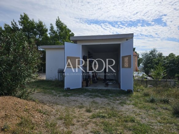 Na okućnici se nalazi i pomoćna zgrada – garaža od 50 m², pogodna za dva automobila ili kombinaciju vozila i brodice.