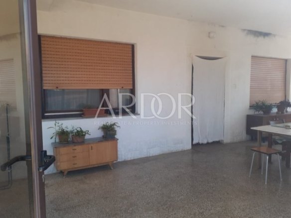 U prizemlju je trosoban stan (100 m2) sa dnevnim boravkom, kuhinjom, kupaonicom, WC-om, ostavom i verandom koji također ima i pogled na more.