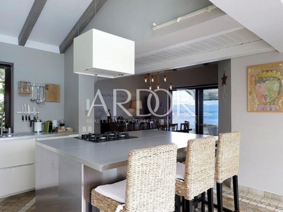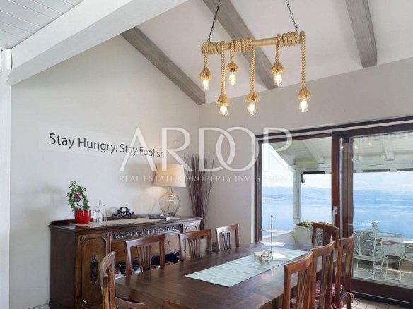Das schöne Hauptwohnzimmer ist mit dem geräumigen Esszimmer und der Küche verbunden. Der gesamte Raum bietet einen unverbauten Blick auf die Kvarner Bucht. Vom Esszimmer aus gelangt man auf einen bezaubernden Balkon mit atemberaubender Aussicht. Von der wunderschön eingerichteten und voll ausgestatteten Küche gelangt man auf die Terrasse mit Pool. Darüber hinaus gibt es ein weiteres Wohnzimmer mit Küche und Esszimmer, das für Funktionalität und Komfort im Alltag sorgt.