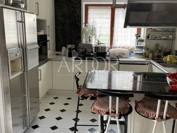Volosko, in einer alten Küstensiedlung, ein Einfamilienhaus zum Verkauf, nicht weit vom Meer entfernt, mit einer Gesamtfläche von 350 m2, bestehend aus Keller, Erdgeschoss und Obergeschoss. Im Untergeschoss von ca. 80 m2 befinden sich ein Besprechungszimmer, eine kleine Küche, ein Schlafzimmer und eine Gästetoilette. Auf der gleichen Etage befindet sich ein SPA-Bereich mit einer entspannenden Massagewanne mit Dusche und einer Sauna. Auf der Südseite befindet sich eine große Terrasse zum geselligen Beisammensein, die sich über die gesamte Länge des Hauses erstreckt. Das Erdgeschoss besteht aus einem Wohnzimmer mit separatem Ausgang zur Terrasse, einer Küche mit Terrasse, einem Esszimmer, einer Waschküche, einem Flur, einem Badezimmer und einer weiteren separaten Toilette. Die erste Etage ist mit einem großen Badezimmer, einer separaten Toilette und einem Kleiderschrank sowie 4 Schlafzimmern mit Terrassen ausgestattet, die einen schönen Blick auf das Meer bieten. Es gibt Parkplätze für 3 Fahrzeuge und eine Garage, in der 2 Autos auf der angelegten Gartenfläche von 950 m2 geparkt werden können. Die Heizung erfolgt zentral mit Heizöl und auf dem Dach des Hauses befinden sich Sonnenkollektoren. Das Haus ist mit 50 cm dicken Wänden gut isoliert.