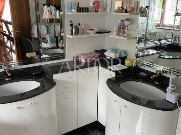 Volosko, nel vecchio villaggio costiero, vendesi casa indipendente vicino al mare con una superficie totale di 350 m2 che si compone di seminterrato, piano terra e primo piano. Nel seminterrato, di circa 80 m2, c’è una stanza sociale, una piccola cucina e una camera da letto e bagno per gli ospiti. Sullo stesso piano si trova un’area SPA con una rilassante vasca idromassaggio con doccia e sauna. Sul lato sud c’è un ampio terrazzo per socializzare che si estende per tutta la lunghezza della casa. Il piano terra è composto da un soggiorno con uscita separata sulla terrazza, cucina con terrazza, sala da pranzo, lavanderia, disimpegno e bagno e un altro wc separato. Il primo piano ha un ampio bagno, servizi igienici separati e spogliatoio e 4 camere da letto con terrazze con splendida vista sul mare. Su un giardino paesaggistico di 950 m2 c’è un parcheggio per 3 veicoli e un garage dove possono essere parcheggiate 2 auto. Il riscaldamento è a gasolio e ci sono pannelli solari sul tetto della casa. La casa è ben isolata con pareti spesse 50 cm.