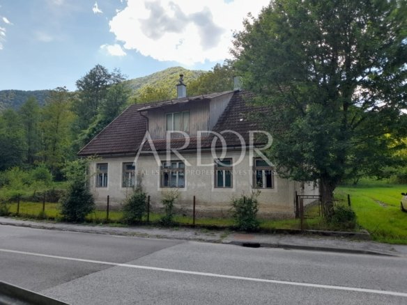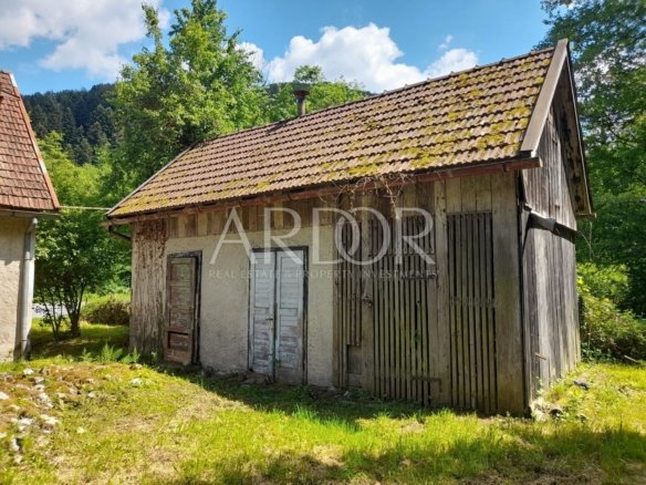 This detached house, along with two auxiliary buildings, is located in the highly attractive location at the heart of Brod na Kupi, right by the Kupica River. It has complete ownership documentation. This area, near the Slovenian border, offers privacy but also opportunities for tourism, as well as enjoyment in fishing, rafting, cycling, and more. The property is just 4 meters from the Kupica River, 500 meters from the Kupa River, 15 km from the administrative center of Delnice, which has all the amenities for daily life, and 60 km from the city of Rijeka and the sea, with good road connections.