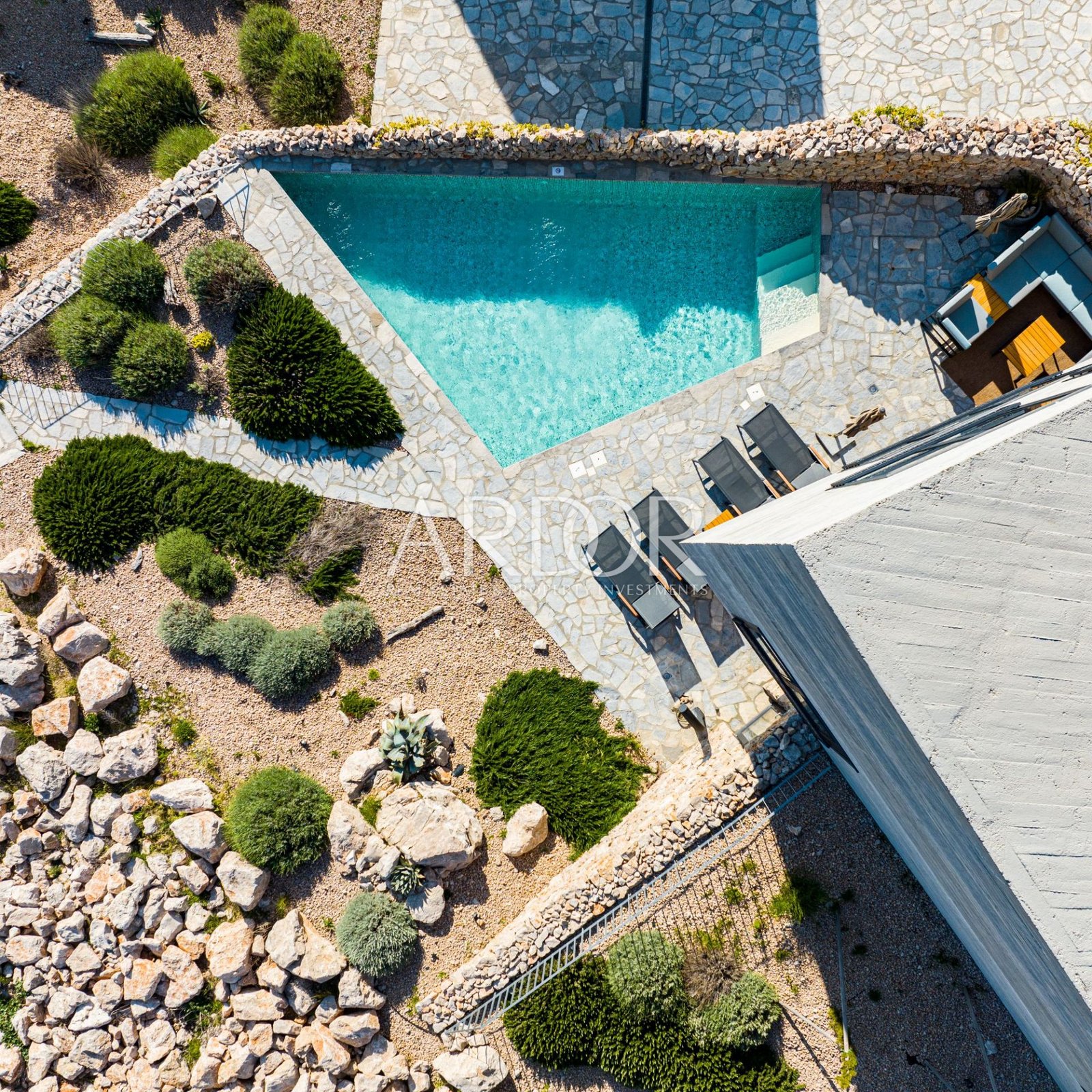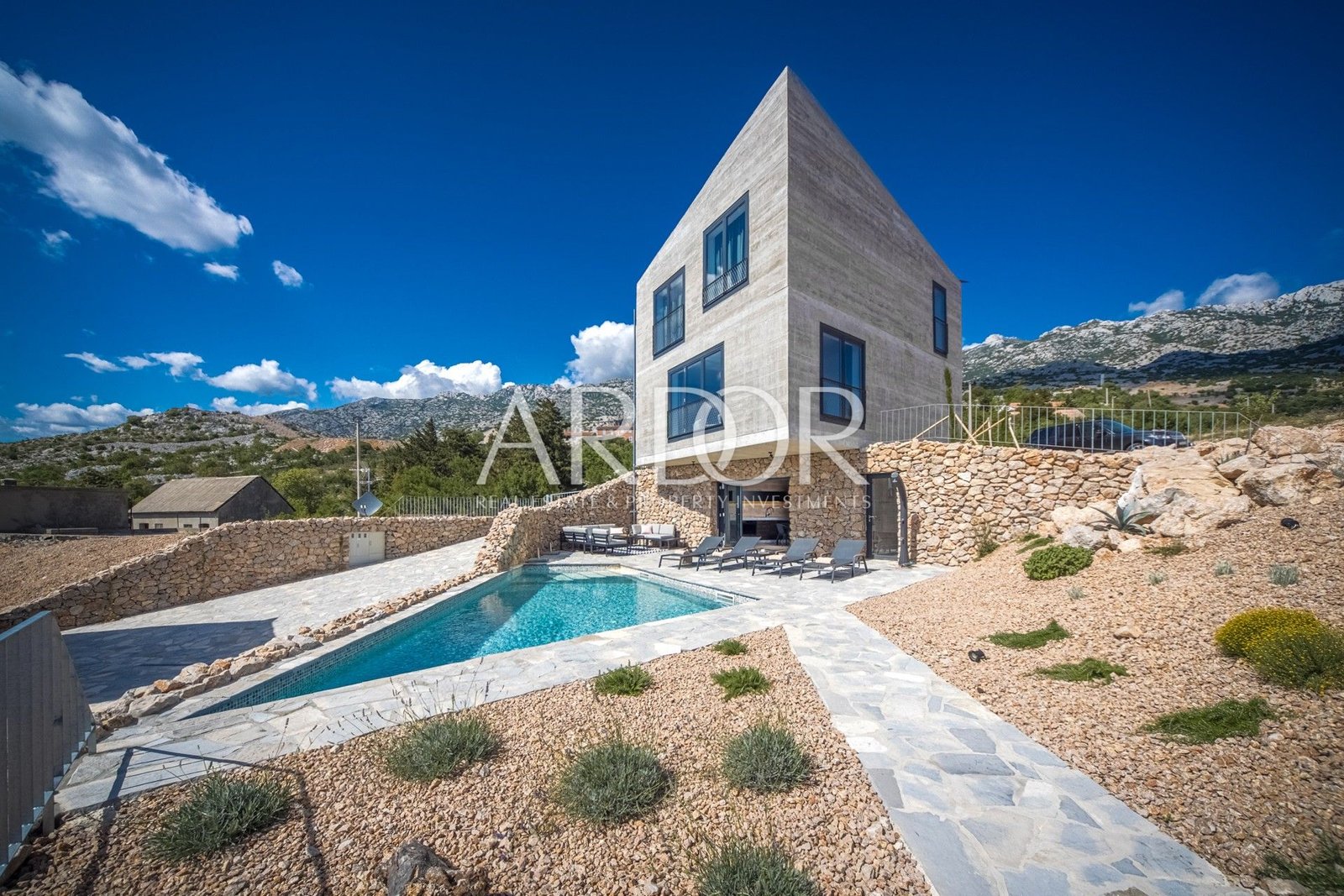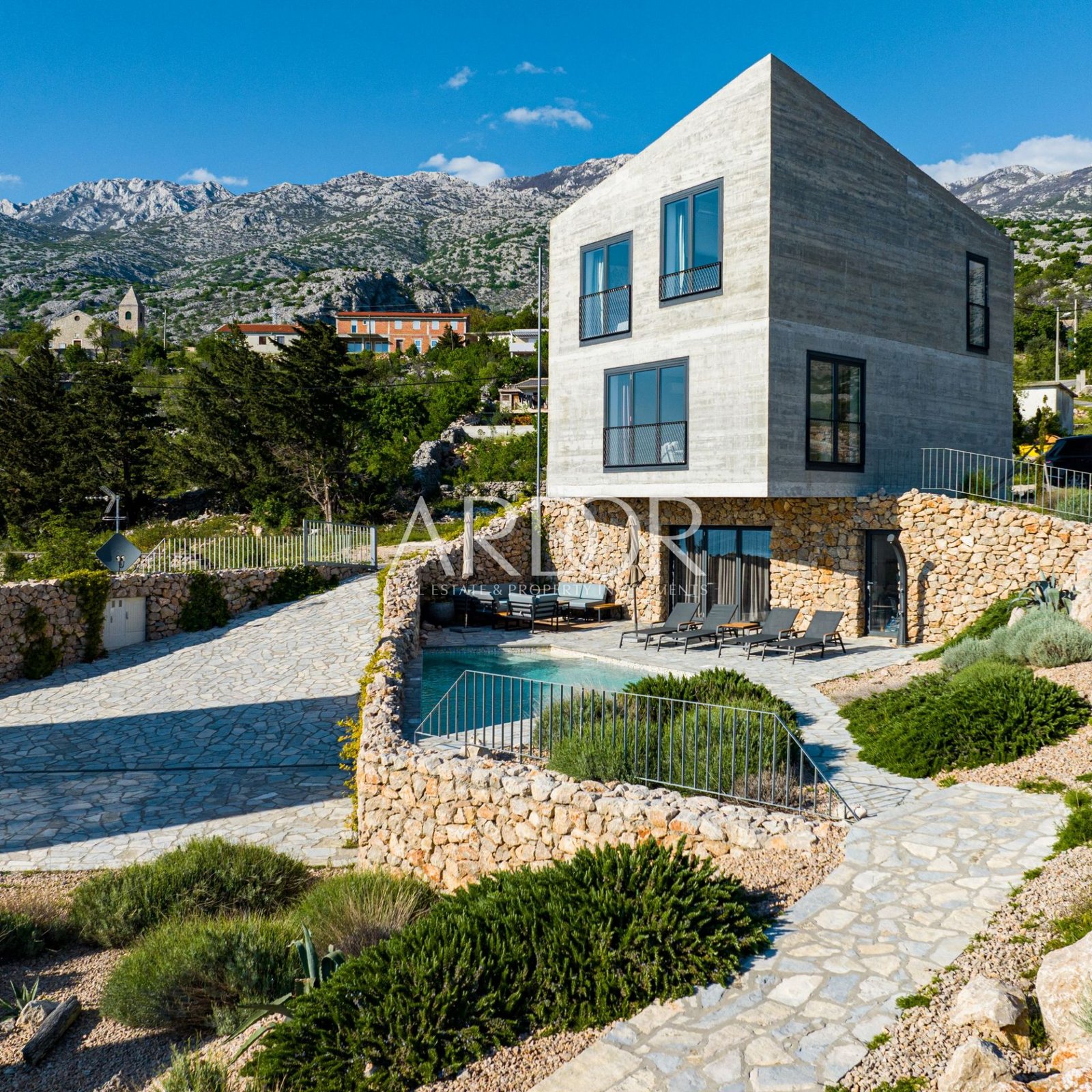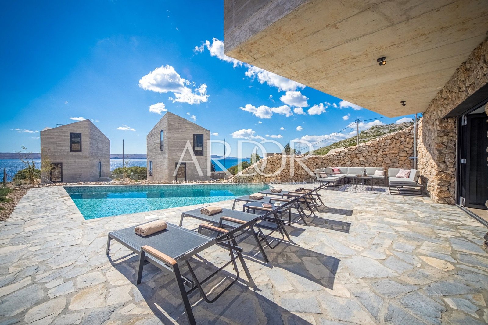 The project was conceived and implemented by a famous Croatian architect, creating houses that rely on the idea of ​​a traditional coastal house with a modern association with the stone in the surroundings and the island of Pag in the distance.