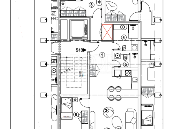 Dieser exklusive Komplex besteht aus zwei unterirdischen Garagenebenen, die per Aufzug mit dem Wohnbereich verbunden sind. Der Wohnteil umfasst 29 Wohnungen, verteilt auf drei getrennte Eingänge, wobei sich auf jeder Etage zwei Wohnungen befinden. Das Gebäude hat insgesamt fünf oberirdische und zwei unterirdische Stockwerke. Im obersten Stockwerk befinden sich drei luxuriöse Penthäuser.
