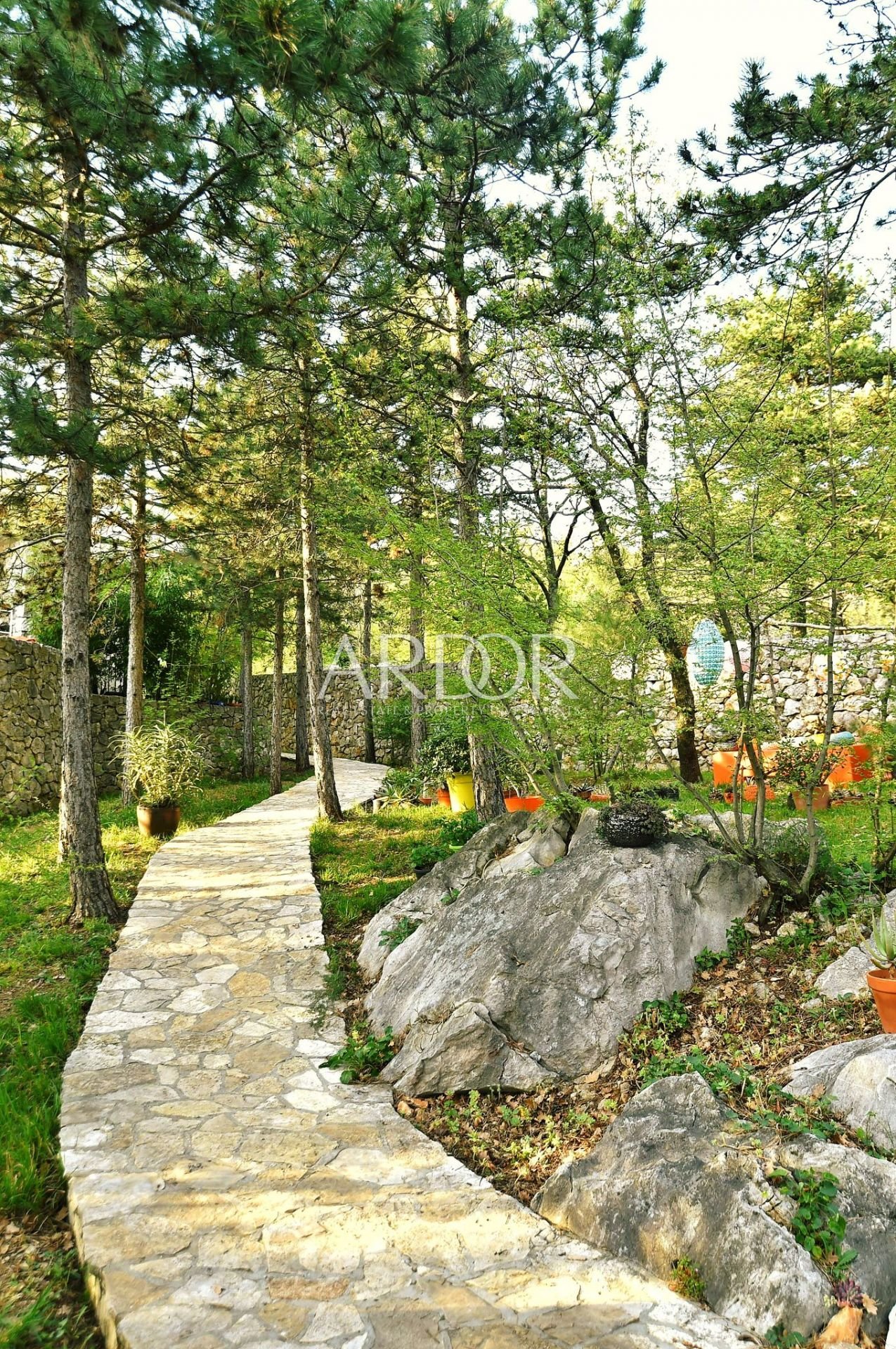 The plot is completely enclosed by a stone wall, and in addition to a garage, the villa offers several outdoor parking spaces. The entire complex was built in 2015.