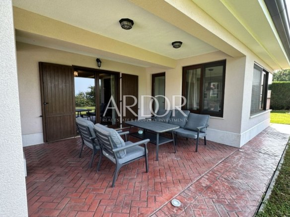 Hiša je opremljena s številnimi sodobnimi sistemi: video nadzor, alarm, klima naprave, sistem za namakanje in centralno ogrevanje. Oddaja se popolnoma opremljena s kakovostnim pohištvom in napravami.
