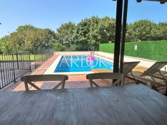 Der gepflegte Außenbereich bietet einen Pool sowie ein Gartenhaus, das als voll ausgestattete Sommerküche mit Grill, kleinem WC und zusätzlichem Abstellraum dient. Hinter dem Haus befindet sich ein privater Sportplatz und im Untergeschoss ein Weinkeller oder Partyraum.