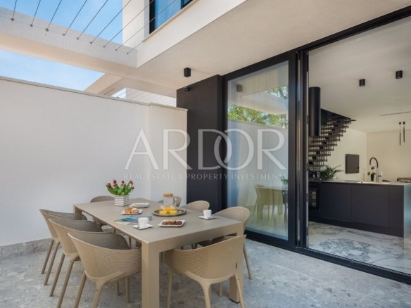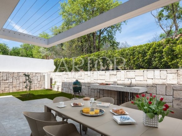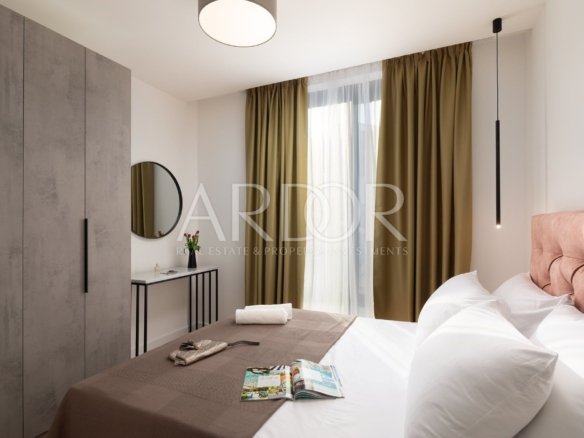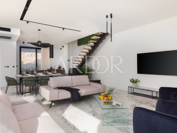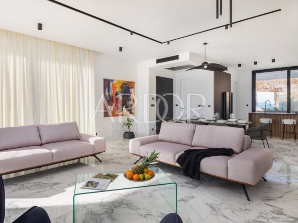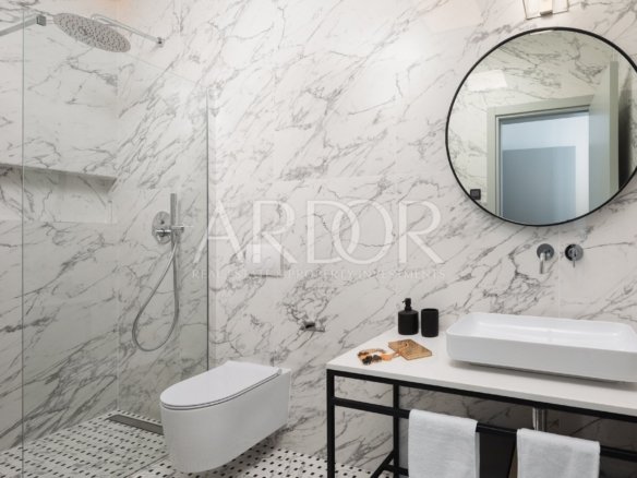 Viene venduto completamente arredato e dotato di mobili ed elettrodomestici di alta qualità. Il riscaldamento e il raffreddamento sono possibili tramite riscaldamento a pavimento nel soggiorno e nel bagno, nonché tramite ventilconvettori in tutte le camere da letto. Serramenti esterni in alluminio di alta qualità, impianti sanitari di alta qualità, porte d'ingresso antieffrazione ecc.