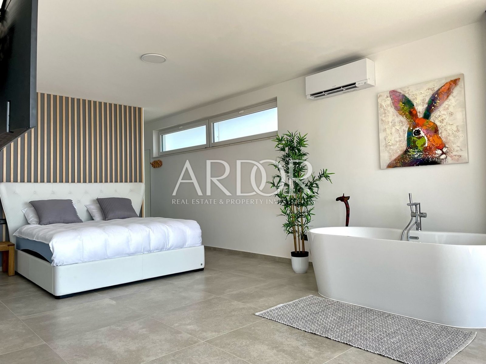 Klima uređaji u svakoj prostoriji i podno grijanje osiguravaju ugodnu temperaturu tijekom cijele godine, dok vanjska ambijentalna rasvjeta omogućuje uživanje u večernjim satima.