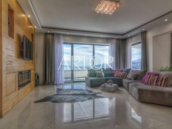 Stan se sastoji od tri udobne spavaće sobe, dvije luksuzno opremljene kupaonice, dvije garderobne sobe, prostranog dnevnog boravka s kuhinjom i blagovaonicom, hodnika, WC-a i spremišta. Visoki stropovi od 3 metra čine prostor još svjetlijim i prozračnijim, stvarajući ugodnu atmosferu.