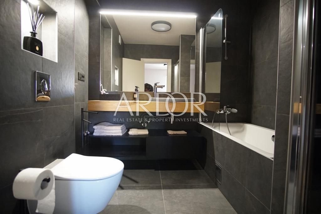 It consists of an entrance hall, open space consisting of a kitchen with dining area and living room, a total of three bedrooms, two of which are large with private bathroom with shower and bathtub. The third bedroom is slightly smaller and can be used as a guest room or children's room. The apartment has a third bathroom, guest. Each bedroom has access to its own terrace. Heating is underfloor, each room is air conditioned.