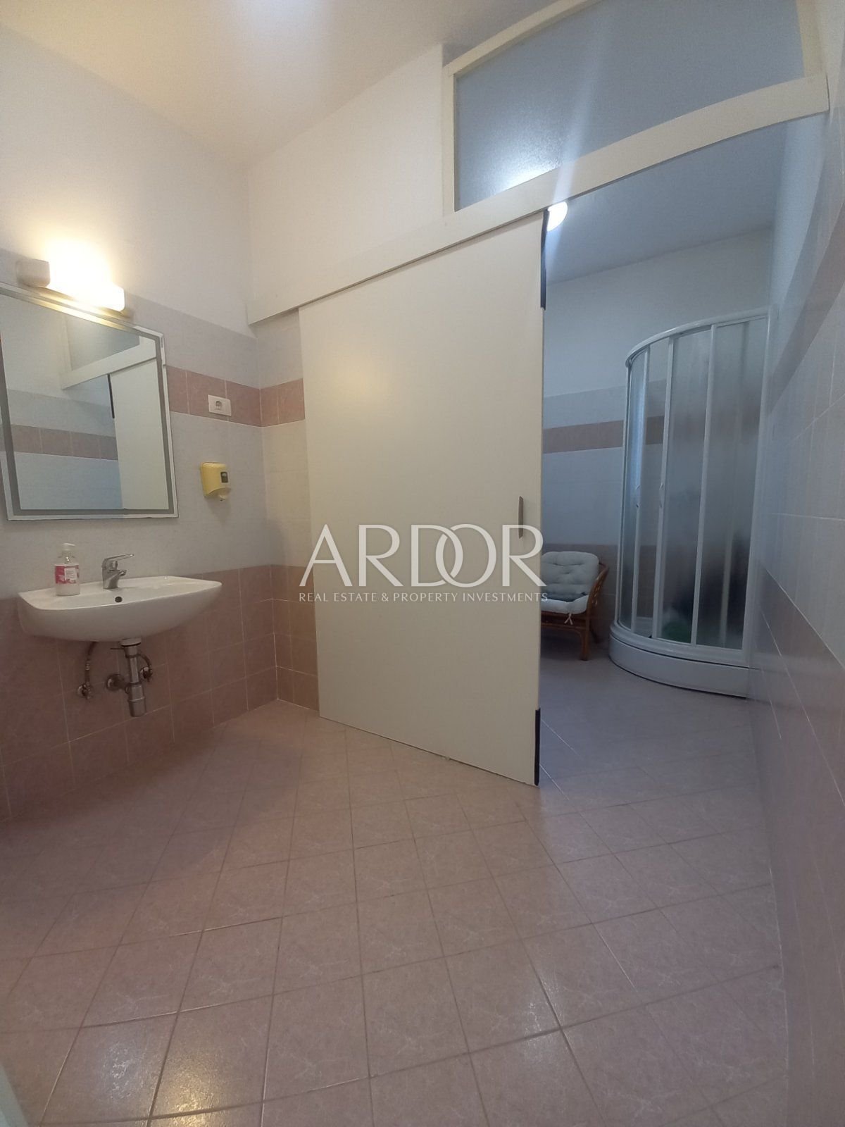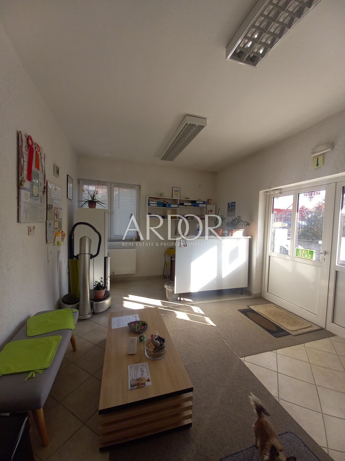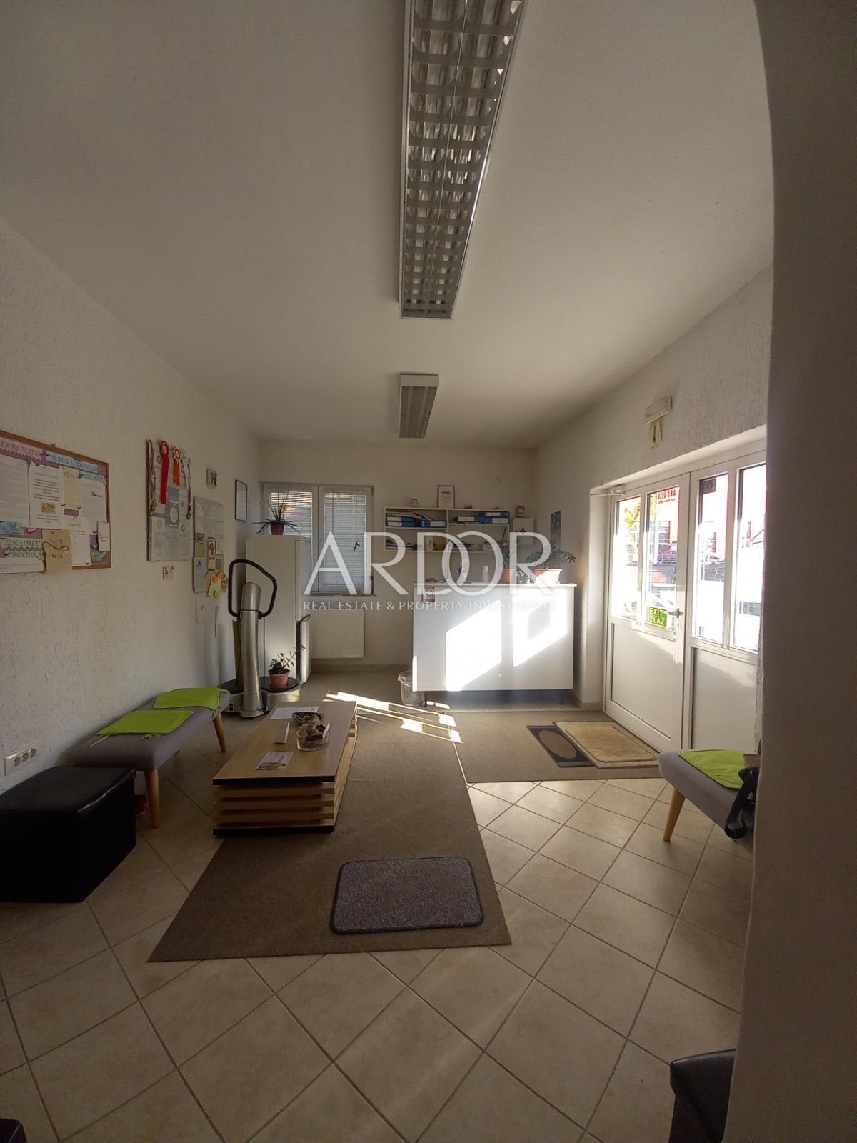 IZNAJMLJUJE SE poslovni prostor u prizemlju, sa recepcijom, sanitarijama, i OPEN SPACE prostorom. Uvedeno je centralno grijanje, klima uređaj, a ulaz u samu prostoriju postoji i direktno, bez prolaza uz recepciju, a sve ovisi o dogovoru sa najmodavcem, odnosno, o namjeni korištenja samog prostora. Sve je vrlo uredno i puno je svjetla, a sam je prostor moguće, pregradama prilagoditi vlastitim potrebama. Parkirni prostor je popločen, i vrlo uredan i velik.