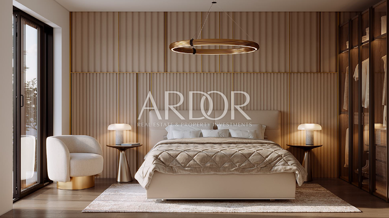 Stanovanje ima skupno površino 144,12 m² in obsega vhodni hodnik, shrambo, dve spalnici, dve kopalnici ter odprt bivalni prostor, ki združuje dnevno sobo, kuhinjo in jedilnico. Iz dnevnega prostora je izhod na teraso velikosti 46,10 m².
