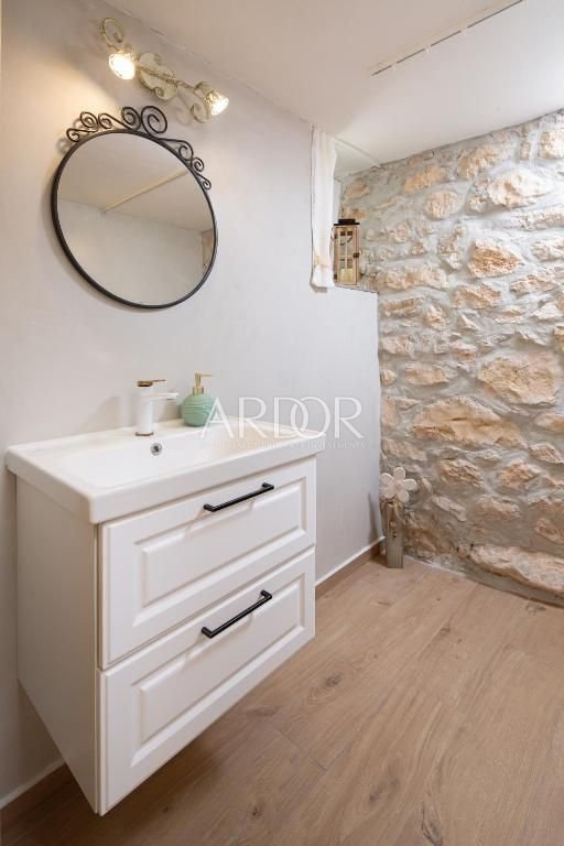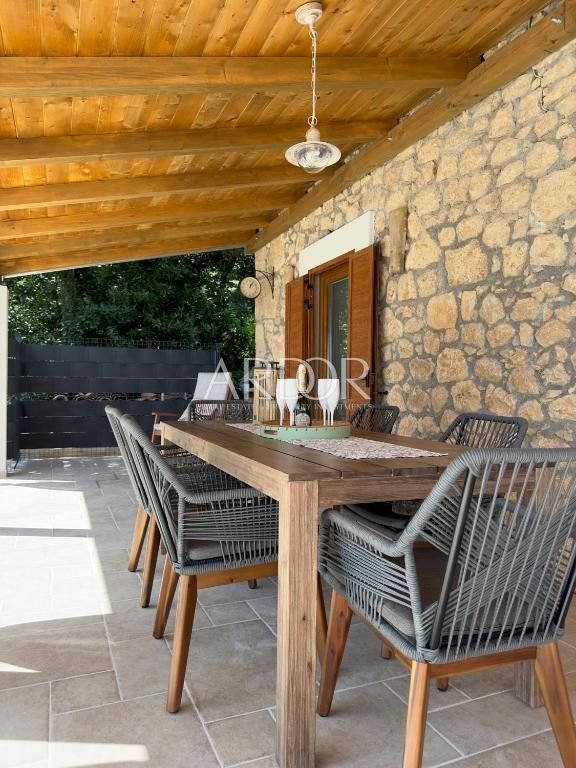 It is located in the village of Bribir, in the Vinodol Valley, within the Primorje-Gorski Kotar County, near Crikvenica and Novi Vinodolski, approximately 5 km from the sea. The garden is spacious and fenced, suitable for children and pets, and allows comfortable outdoor living with a high level of privacy.