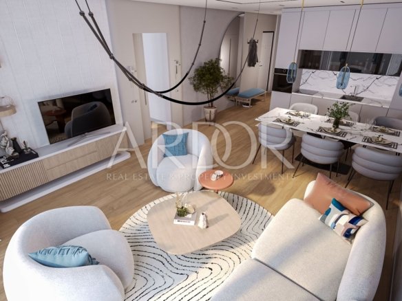 As soon as you enter the building, you will be charmed by the modern design and carefully selected materials that provide a feeling of elegance and luxury. Each apartment is oriented south-north, from the south side there is a balcony, while the side apartments are oriented on three sides, with larger open terraces.