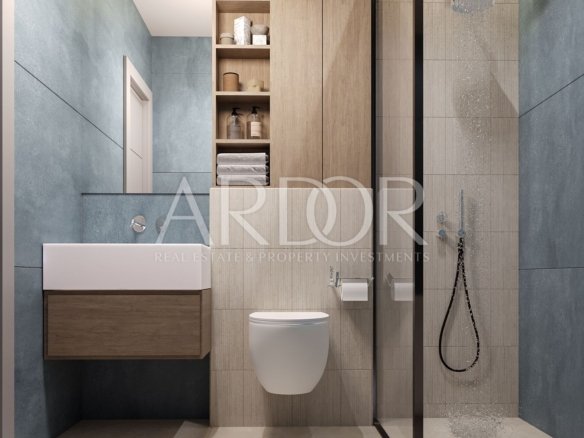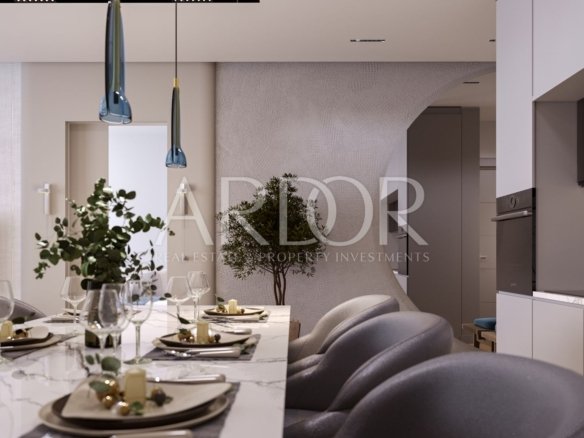 Već pri ulasku u zgradu, očarat ćete se modernim dizajnom i pažljivo odabranim materijalima koji pružaju osjećaj elegancije i luksuza. Svaki stan orijentacije je jug-sjever, sa južne strane izlazi se na balkon, dok su bočni stanovi orijentirani trostrano, sa većim otvorenim terasama.