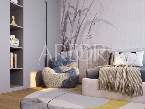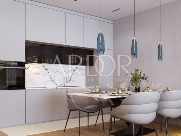 The apartments are equipped with heating and cooling systems with Daikin heat pumps, a fan coil system, all have underfloor heating, three-layer aluminum joinery with glass walls up to 7.5m wide. There are first-class parquet floors on the floors, and the bathrooms are equipped with high-quality Italian ceramics.