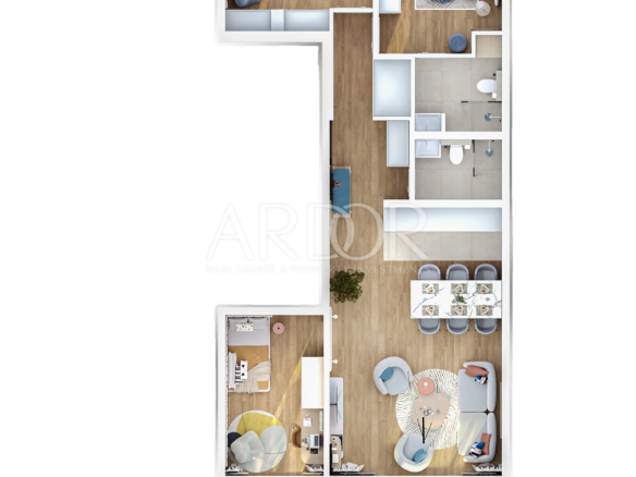 Non appena entrerete nell’edificio, rimarrete affascinati dal design moderno e dai materiali accuratamente selezionati che forniscono una sensazione di eleganza e lusso. Ogni appartamento è orientato sud-nord, dal lato sud c’è un balcone, mentre gli appartamenti laterali sono orientati su tre lati, con terrazze aperte più grandi.