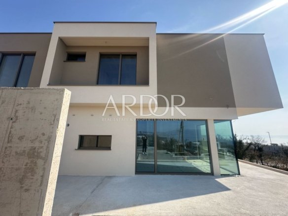Kuća je opremljena vrhunskim materijalima i modernom opremom. Grijanje i hlađenje osigurano je putem dizalice topline Daikin te stropnim klima uređajima.