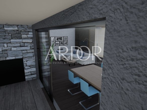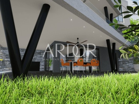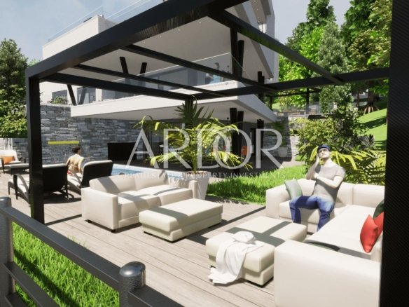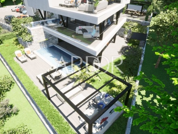 Smješten unutar moderne vile s ukupno tri luksuzna stana, svaki s vlastitim bazenom i zasebnom etažom, ova nekretnina pruža visoku razinu privatnosti i sofisticiran životni stil.