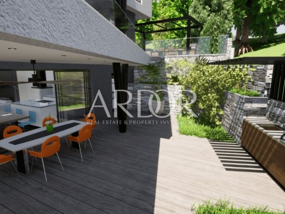 Prodaje se ekskluzivan stan u prizemlju novogradnje smješten na elitnoj lokaciji u Rijeci. Stan površine 95,71 m² sastoji se od tri spavaće sobe, uključujući master sobu s vlastitom kupaonicom, prostranog dnevnog boravka s kuhinjom i blagovaonicom, kupaonice, ostave i izlaza na vlastiti vrt s grijanim bazenom.