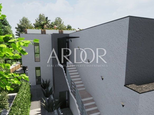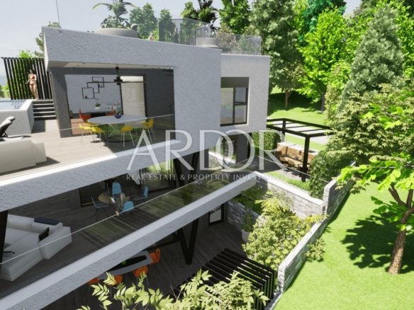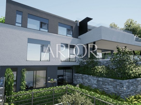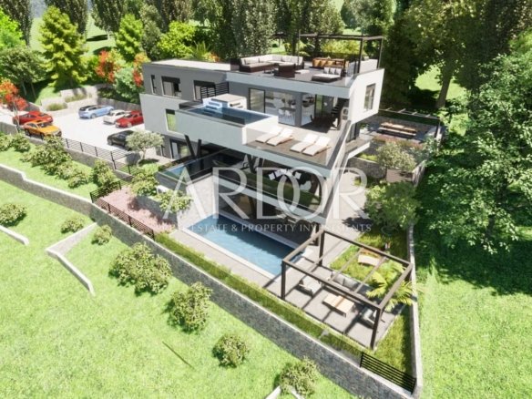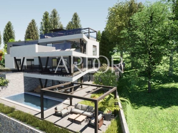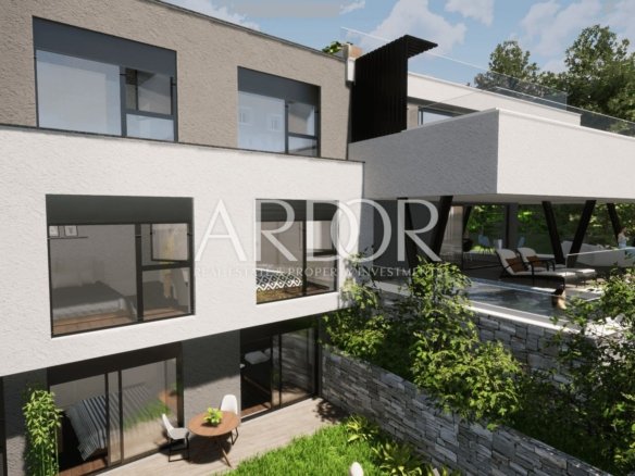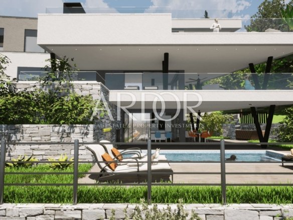 Smješten unutar moderne vile s ukupno tri luksuzna stana, svaki s vlastitim bazenom i zasebnom etažom, ova nekretnina pruža visoku razinu privatnosti i sofisticiran životni stil.
