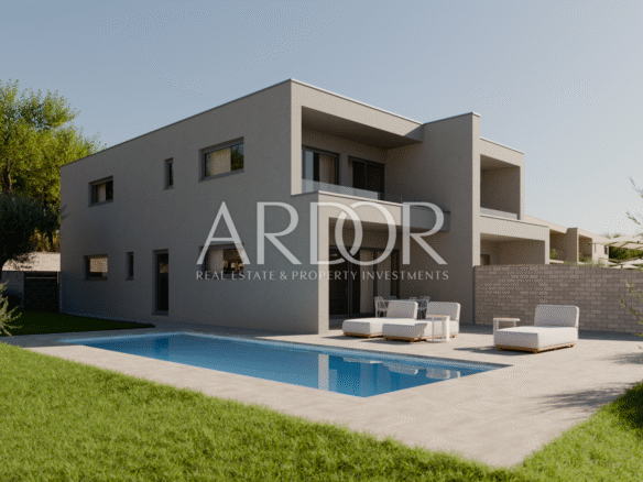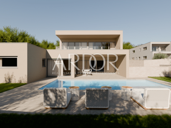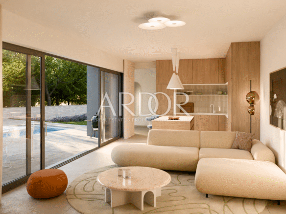 In a quiet corner of the island of Krk, just 800 meters from the sea, these elegant semi-detached villas and one detached house are located – the perfect choice for those looking for a harmony of nature, comfort and modern design.