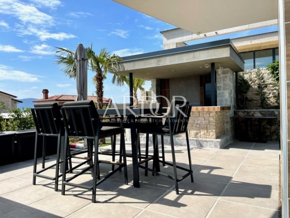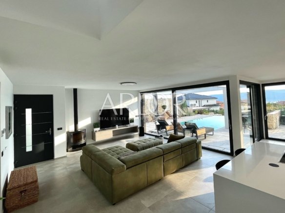 ocated on the island of Krk, this modern villa with a pool offers a breathtaking view of the sea and the island of Cres and offers the perfect combination of comfort and privacy.
