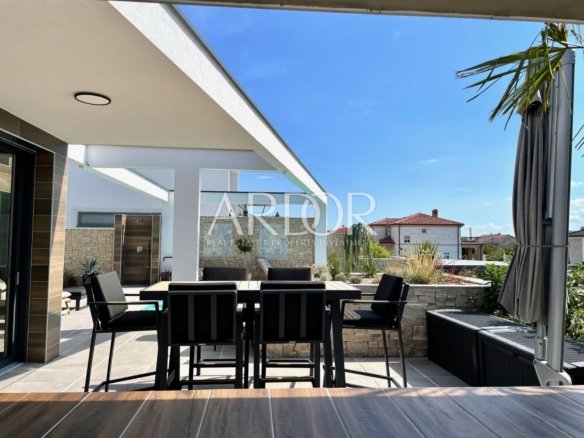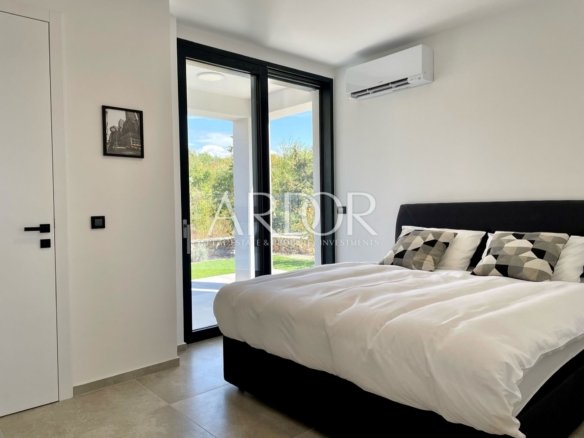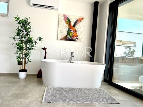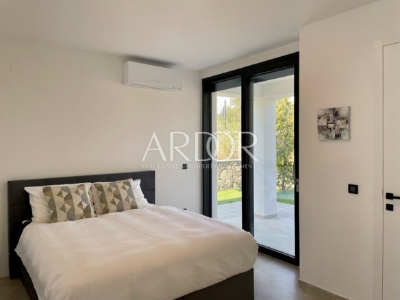 Klima uređaji u svakoj prostoriji i podno grijanje osiguravaju ugodnu temperaturu tijekom cijele godine, dok vanjska ambijentalna rasvjeta omogućuje uživanje u večernjim satima.
