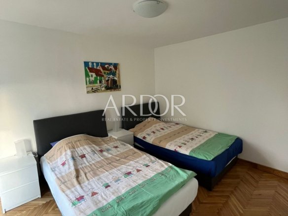 Stan obiluje prirodnom svjetlosti, a raspored prostorija uključuje dvije spavaće sobe, modernu kupaonicu, dodatni toalet, prostrani dnevni boravak, kuhinju s blagovaonicom, ostavu te dva balkona.