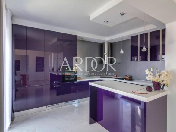 Na prostranom dvorištu nalazi se bazen od 32 m², savršeno mjesto za uživanje u toplim danima, a vila se sastoji od dva ekskluzivna, zasebna stana, svaki s neto stambenom površinom od 160 m², visinom stropova od 3 metra, te vlastitim terasama. Unutar svakog stana naći ćete prostran ulaz, elegantno uređen dnevni boravak s kuhinjom i blagovaonicom, tri udobne spavaće sobe, dvije garderobne sobe, dvije luksuzno opremljene kupaonice, dodatni WC, hodnik i spremište.